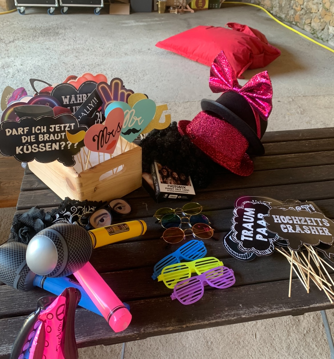 Wir bieten Fotoboxen, lustige Requisiten und professionellen Service.